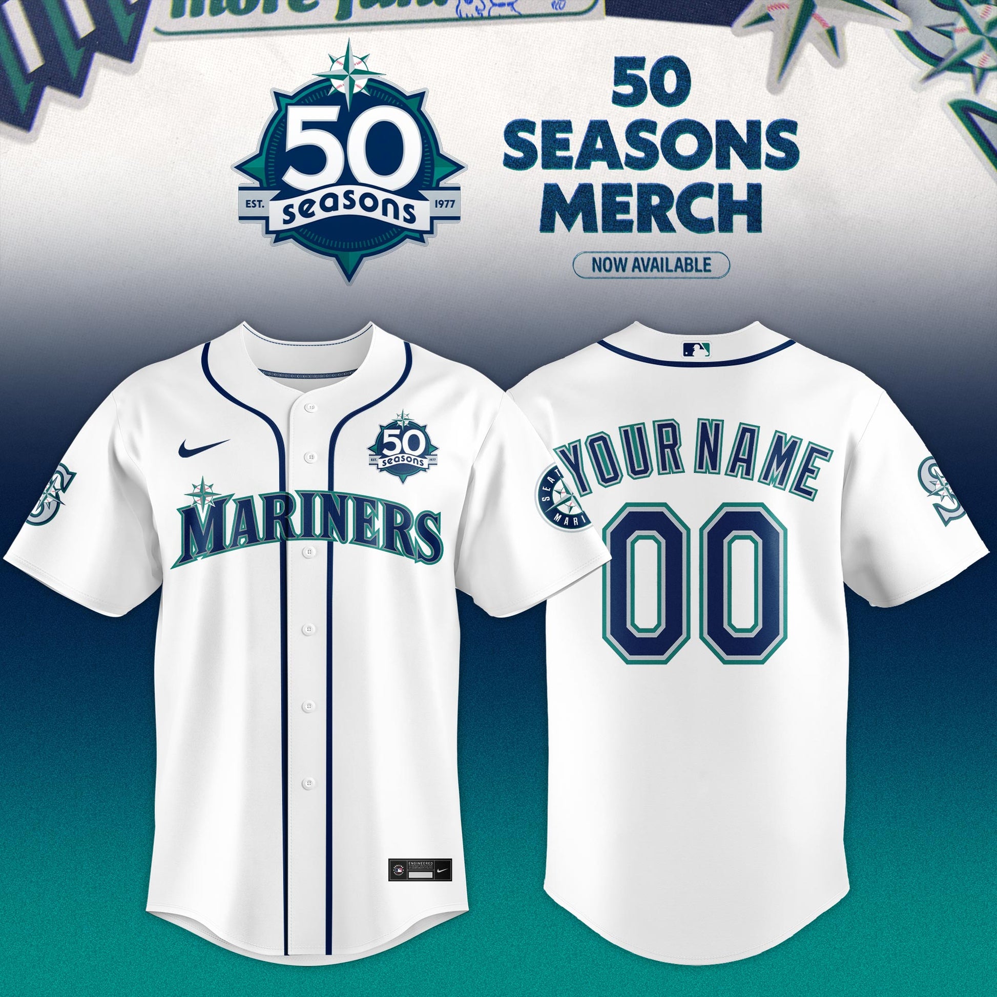 Seattle Mariners 50 Seasons Celebration Special Edition Custom Jersey – White